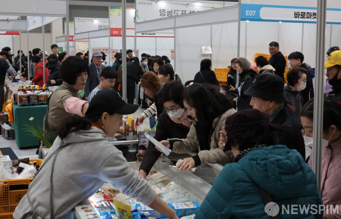 [서울=뉴스핌] 이길동 기자 = 김치의 날인 22일 서울 서초구 양재동 aT센터 열린 2025 대한민국 김장대축제에서 시민들이 김치·김장재료를 살펴보고있다. 2025.11.22 gdlee@newspim.com