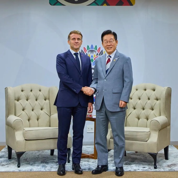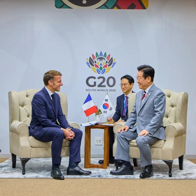 이 대통령과 마크롱 대통령은 이날 오후 남아프리카공화국 요하네스버그에서 개최된 주요 20개국(G20) 정상회의 참석을 계기로 첫 정상회담을 했다.