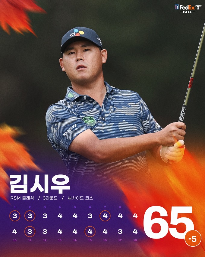 김시우는 23일(한국시간) 미국 조지아주 세인트 시먼스 아일랜드 시아일랜드 골프클럽 시사이드 코스(파70)에서 열린 미국프로골프(PGA) 투어 RSM 클래식 3라운드에서 보기 없는 깔끔한 플레이로 5언더파 65타를 적어냈다.