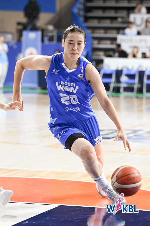 | [서울=뉴스핌] 장환수 스포츠전문기자= 우리은행 이명관이 23일 신한은행과 홈 경기에서 드리블로 돌파를 시도하고 있다. [사진=WKBL] 2025.11.23 zangpabo@newspim.com |