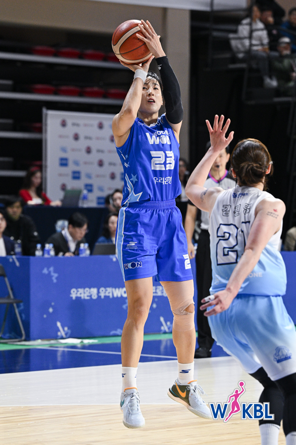 우리은행은 23일 아산 이순신체육관에서 인천 신한은행을 75-51로 꺾고 답답했던 분위기를 되살렸다. 초반 2경기에서 부천 하나은행(45-66), 용인 삼성생명(44-63)에 연달아 대패했던 팀이 맞나 싶을 정도로 경기력은 달라져 있었다.