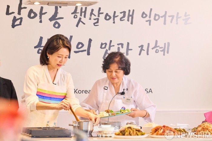 [서울=뉴스핌] 이재명 대통령과 함께 남아프리카공화국을 방문 중인 김혜경 여사가 지난 22일(현지시간) 요하네스버그 주남아공한국문화원에서 열린 한국 장문화 한식행사에 참석하고 있다. [사진=대통령실] 2025.11.24 photo@newspim.com