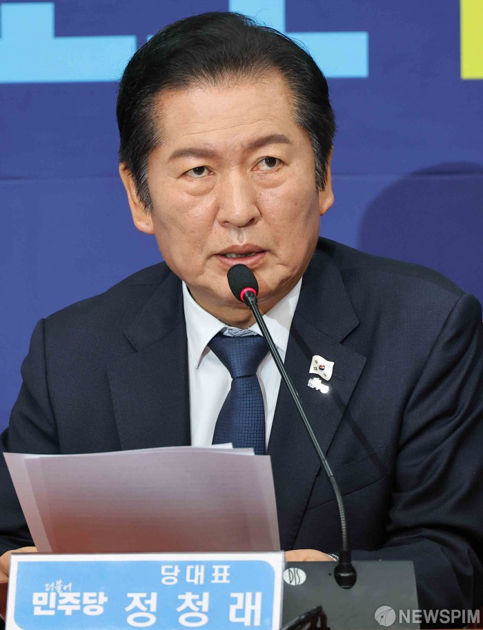 [서울=뉴스핌] 윤창빈 기자 = 정청래 더불어민주당 대표가 24일 서울 여의도 국회에서 열린 최고위원회의에서 모두발언을 하고 있다. 2025.11.24 pangbin@newspim.com