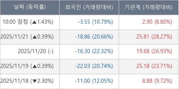 ※ 사모펀드 등 일부 기관의 순매매량은 표시되지 않음
