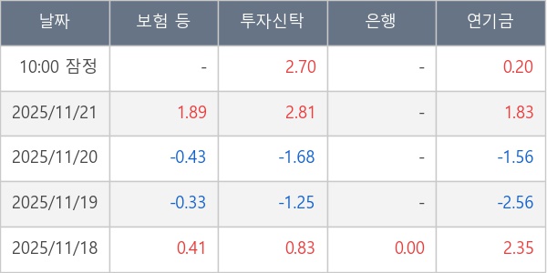 [표] 주요 기관별 순매매량 (단위 만주)