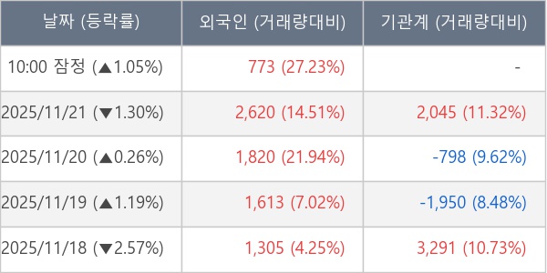 [표] 외국인ㆍ기관 순매매량 (단위 주)
