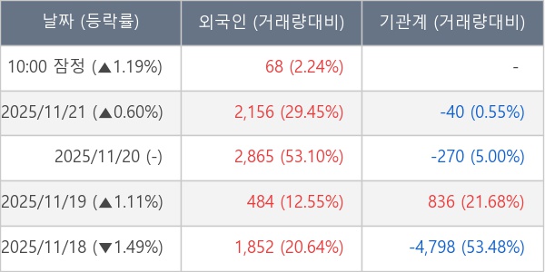 [표] 외국인ㆍ기관 순매매량 (단위 주)