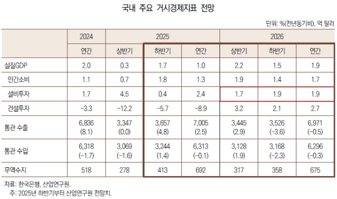 산업연은 "미국발(發) 통상 질서의 변화와 관련된 불확실성이 지속되는 가운데 관세 문제가 현재보다 악화되지 않을 것이라는 전제하에서 주요국들의 경기 부양을 위한 정책 기조 등이 성장의 견인차 역할을 담당하면서 전년보다 낮은 성장률이 예상된다"고 분석했다.