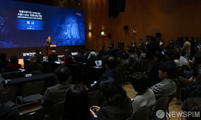[서울=뉴스핌] 양윤모 기자 = 오승록 노원구청장이 24일 시청본관 다목적홀에서 열린 '서울디지털바이오시티(S-DBC) 컨퍼런스'에서 축사를 하고 있다. 이날 컨퍼런스에 참석한 오승록 노원구청장은 축사를 통해 "S-DBC 조성에 전폭적인 정책지원을 아끼지 않은 오세훈 서울시장님께 깊이 감사드린다"며 "S-DBC는 서울 동북권 균형발전을 이끌 핵심 사업이자 미래 혁신산업의 중심지로 성장할 잠재력이 충분하다"고 강조했다. 이어 노원이 바이오산업의 새로운 중심으로 부상할 수 있는 입지적·산업적 강점을 설명했다. 2025.11.24 yym58@newspim.com