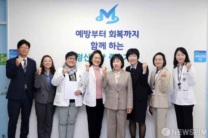 [서울=뉴스핌] 홍소영 병무청장이 24일 서울 광진구 국립정신건강센터를 방문해 병역의무자의 정신건강 지원 강화를 위한 협력 방안을 논의한 뒤 기념촬영을 하고 있다. [사진=병무청] 2025.11.24 photo@newspim.com