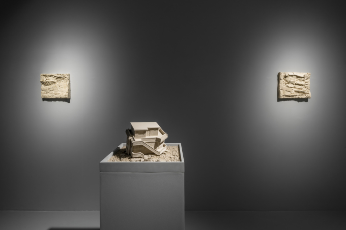 김주리는 점토 조각및 설치 작업을 통해 존재의 이중성을 탐구하는 작가다. 자연적 과정에서 비롯되는 변화를 은유적·지리적 기표로 드러낸다. 지하 1층에 전시된 그의 '클레이 타블렛(Clay Tablet)' 연작은 물에 의해 침식되고 분해된 점토 조각들을 작가가 손의 완력으로 다시 눌러 압축해 완성한 것이다. 이같은 작업은 고대 수메르 점토판의 언어적 기원과 지구의 물리 법칙을 동시에 환기시킨다. 섭씨 1250도의 고열로 소성된 점토판들은 시간과 에너지의 흔적을 품는 동시에, 미래의 누군가가 새로운 해석을 더할 여지를 제공하기도 한다.