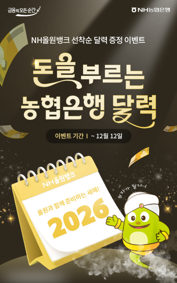 농협은행 관계자는 "새해의 풍요와 행운을 기원하는 마음을 담아 달력 증정 이벤트를 준비했다"며 "NH올원뱅크의 다양한 금융 서비스와 함께 뜻깊은 2026년을 맞이하시길 바란다"고 말했다.