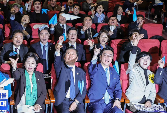 [서울=뉴스핌] 윤창빈 기자 = 정청래 더불어민주당 대표를 비롯한 서울시당 및 참석자들이 25일 서울 여의도 국회 의원회관에서 열린 민주당 서울시당 ‘천만의 꿈 경청단’ 출범식에서 종이비행기 날리기 퍼포먼스를 하고 있다. 2025.11.25 pangbin@newspim.com