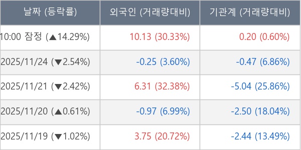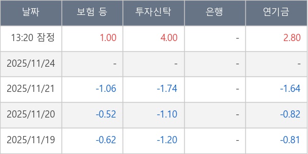 ※ 사모펀드 등 일부 기관의 순매매량은 표시되지 않음