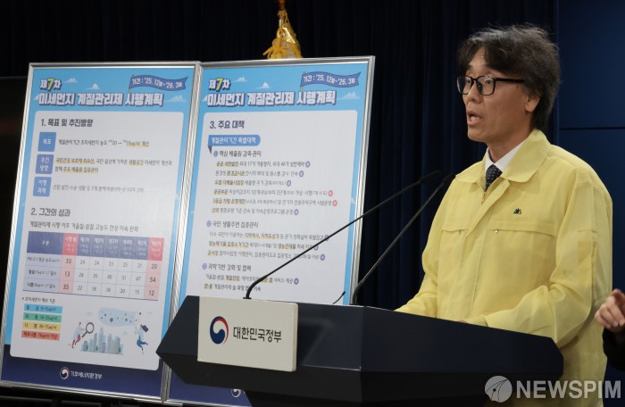 [서울=뉴스핌] 이길동 기자 = 금한승 기후에너지환경부 1차관이 24일 서울 종로구 정부서울청사에서 제7차 미세먼지 계절관리제 시행계획 관련 브리핑을 하고 있다. 2025.11.24gdlee@newspim.com