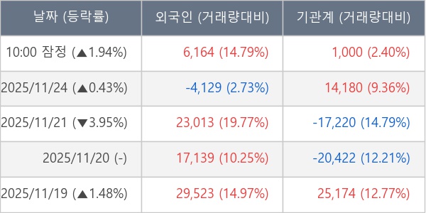 ※ 사모펀드 등 일부 기관의 순매매량은 표시되지 않음