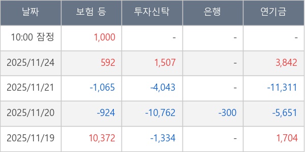 [표] 주요 기관별 순매매량 (단위 주)