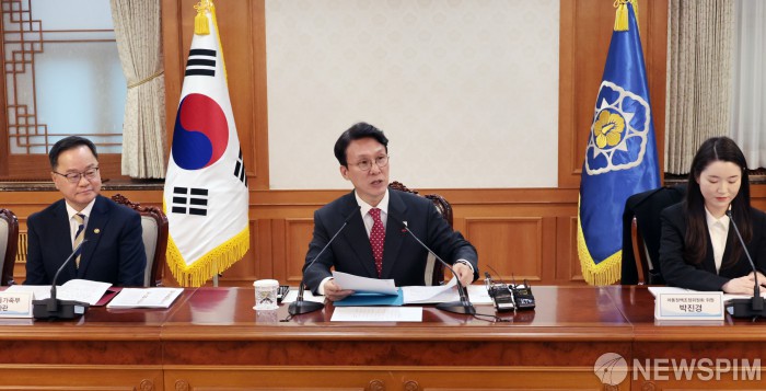 [서울=뉴스핌] 이길동 기자 = 김민석 국무총리가 25일 서울 종로구 정부서울청사에서 열린 아동정책조정위원회 회의를 주재하며 모두 발언을 하고 있다. 2025.11.25 gdlee@newspim.com