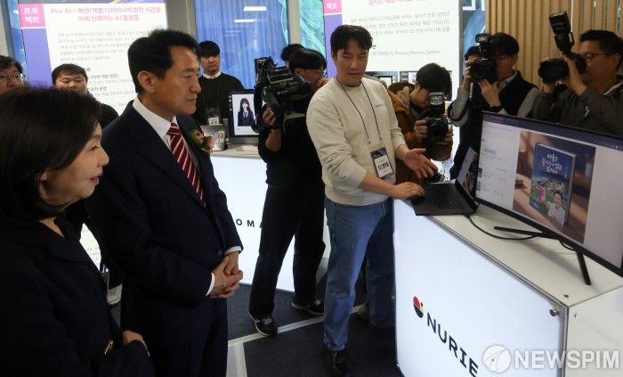 [서울=뉴스핌] 최지환 기자 = 오세훈 서울시장이 25일 오후 서울 서초구 서울 AI허브 메인센터에서 열린 서울산업AX혁신센터 출범식에 앞서 AX 스타트업 부스들을 살펴보고 있다. 2025.11.25 choipix16@newspim.com