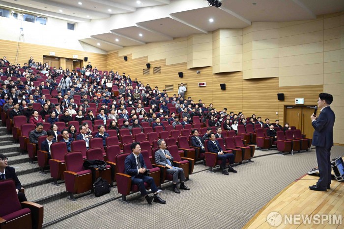 [서울=뉴스핌] = 김정관 산업통상부 장관이 25일 정부세종청사 12동 대강당에서 산업부 본부 및 소속기관 직원이 참석한 가운데 열린 산업통상부 타운홀미팅에서 인사말을 하고 있다. [사진=산업통상부] 2025.11.25 photo@newspim.com