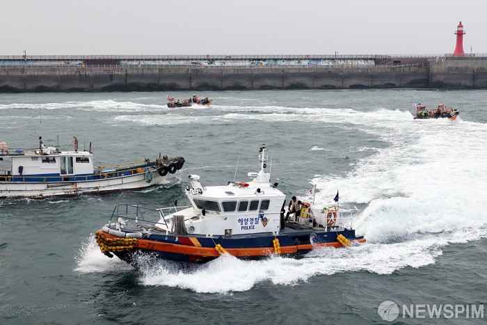 [서울=뉴스핌] = 25일 29개 관계기관 합동으로 인천항 인근 해상에서 열린 레디 코리아(READY Korea) 4차 훈련에서 해상 선박 충돌사고 인명구조 훈련이 진행되고 있다. [사진=행정안전부] 2025.11.25 photo@newspim.com