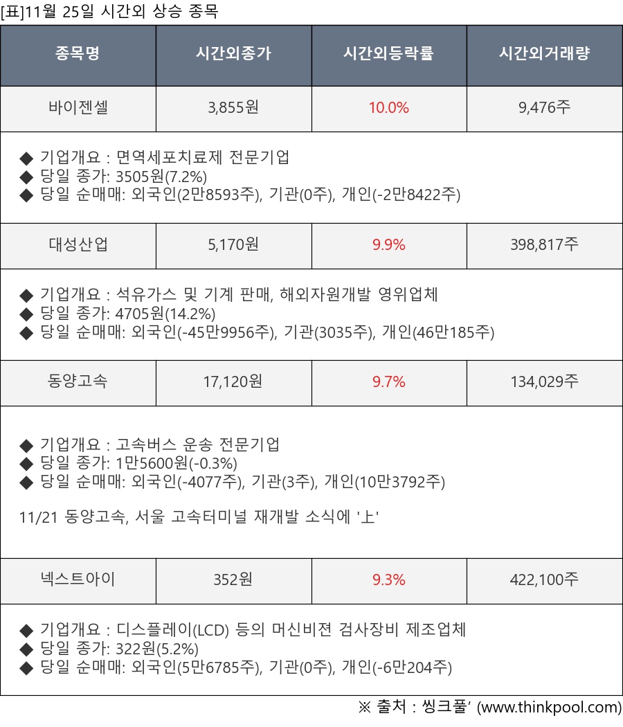 ※ 관련 종목: 바이젠셀, 대성산업, 동양고속, 넥스트아이