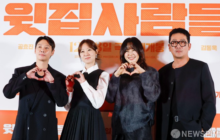 [서울=뉴스핌] 류기찬 기자 = 배우 김동욱(왼쪽부터), 공효진, 이하늬, 하정우가 25일 오후 서울 강남구 메가박스 코엑스에서 열린 영화 ‘윗집사람들’ 기자 간담회에서 포즈를 취하고 있다. ‘윗집사람들’은 매일 밤 ‘섹다른’ 층간소음으로 인해 윗집 부부(하정우, 이하늬)와 아랫집 부부(공효진, 김동욱)가 함께 하룻밤 식사를 하게 되면서 벌어지는 예측불허 이야기를 담은 작품이다. 오는 12월 3일 개봉. 2025.11.25 ryuchan0925@newspim.com