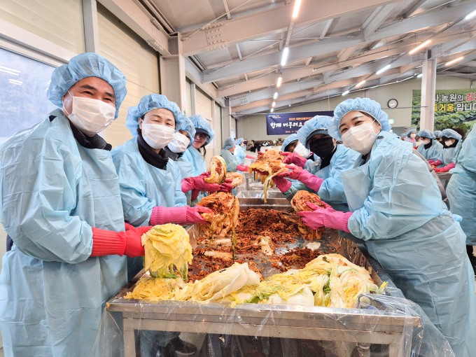 [용인=뉴스핌] 노호근 기자 = 용인특례시의회 유진선 의장은 25일 남사농원에서 열린 '북한이탈주민과 함께하는 사랑의 김장나눔 행사'에 참석해 주민들과 함께 약 2000kg의 김장김치를 담갔다.