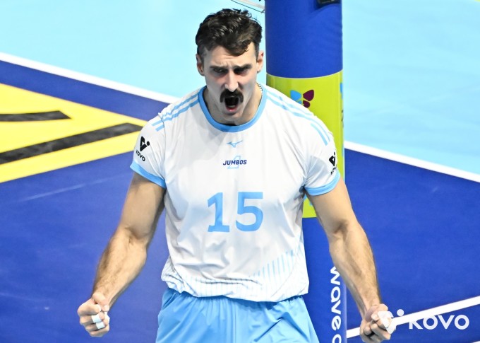 | 러셀이 25일 V리그 남자부 KB손해보험전에서 득점 후 포효하고 있다. [사진=KOVO] |