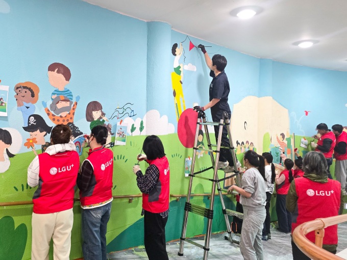 LG유플러스는 도서관 개관과 함께 벽화 그리기 봉사활동도 진행했다. 지난 25일 임직원 20여명은 학교 담장에 약 46㎡ 규모의 벽화를 그렸다. 밝은 색감으로 구성된 벽화는 저시력 학생들이 보다 따뜻하고 안정적인 분위기에서 학습할 수 있도록 환경을 조성하는 데 도움을 줄 것으로 기대된다.