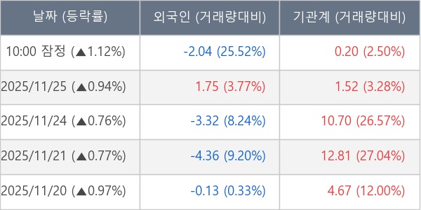 ※ 사모펀드 등 일부 기관의 순매매량은 표시되지 않음