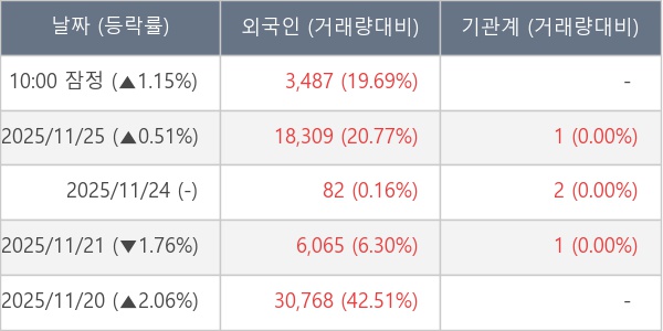 [표] 외국인ㆍ기관 순매매량 (단위 주)