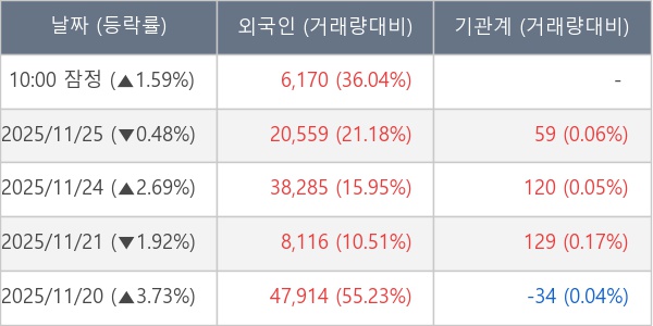 [표] 외국인ㆍ기관 순매매량 (단위 주)