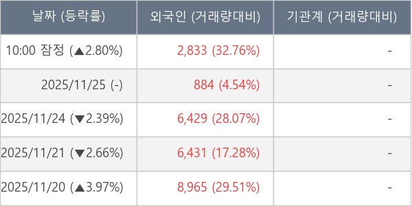 [표] 외국인ㆍ기관 순매매량 (단위 주)