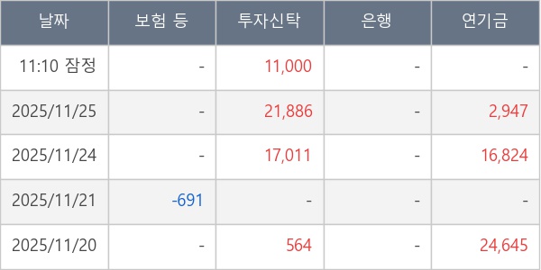[표] 주요 기관별 순매매량 (단위 주)