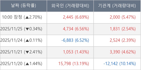 ※ 사모펀드 등 일부 기관의 순매매량은 표시되지 않음