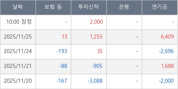 [표] 주요 기관별 순매매량 (단위 주)