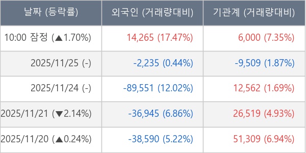 ※ 사모펀드 등 일부 기관의 순매매량은 표시되지 않음