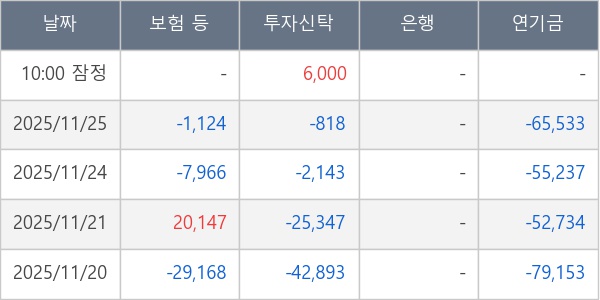 [표] 주요 기관별 순매매량 (단위 주)