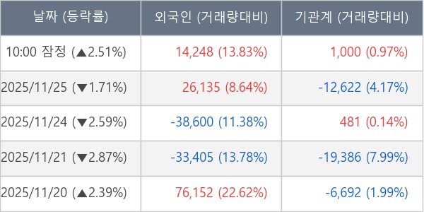※ 사모펀드 등 일부 기관의 순매매량은 표시되지 않음