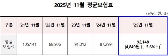 새로운 소득과 재산 반영으로 이달 지역가입자 평균보험료는 9만2148원이다. 전년 대비 4849원(5.6%) 증가하지만, 최근 4년 평균 9만3090원에 비해 낮은 수준이다.
