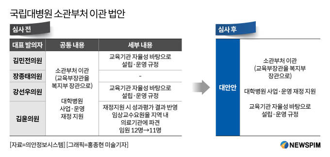 [세종=뉴스핌] 신도경 기자 = 국립대병원 소관 부처를 교육부에서 보건복지부로 이관하는 법안이 국회 교육위원회(교육위) 법안심사소위원회(법안소위)를 통과했다.
