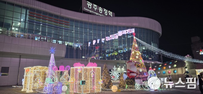 [광주=뉴스핌] 박진형 기자 = 26일 광주 송정역 일대가 '산타마을' 콘셉트로 꾸며져 연말 분위기를 자아내고 있다. LED 전구를 두른 트리와 선물 상자 등 다양한 장식물이 형형색색 빛을 내 눈길을 끈다. 광산구의 '12월 가장 예쁜 역' 사업에 힘입어 겨울철 명소로 자리매김하고 있다. 2025.11.26 bless4ya@newspim.com