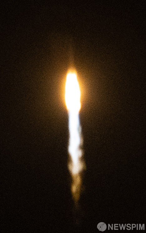 [여수=뉴스핌] 최지환 기자 = 27일 새벽 전남 여수시 금오도에서 바라본 한국형발사체 누리호가 고흥 나로우주센터에서 우주로 날아오르고 있다. 2025.11.27 choipix16@newspim.com