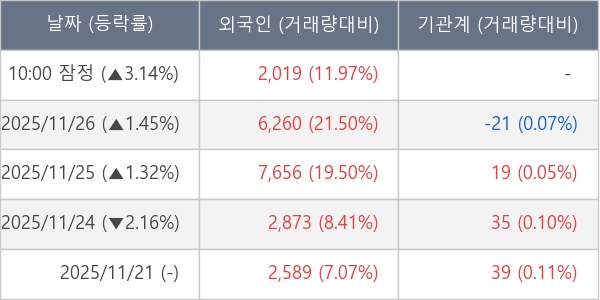 [표] 외국인ㆍ기관 순매매량 (단위 주)