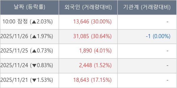 [표] 외국인ㆍ기관 순매매량 (단위 주)