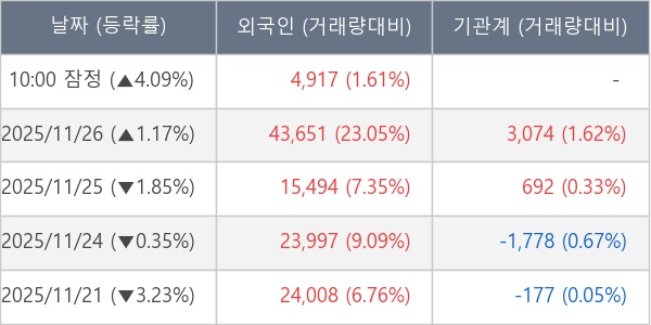 [표] 외국인ㆍ기관 순매매량 (단위 주)