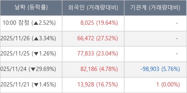 [표] 외국인ㆍ기관 순매매량 (단위 주)