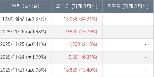 [표] 외국인ㆍ기관 순매매량 (단위 주)