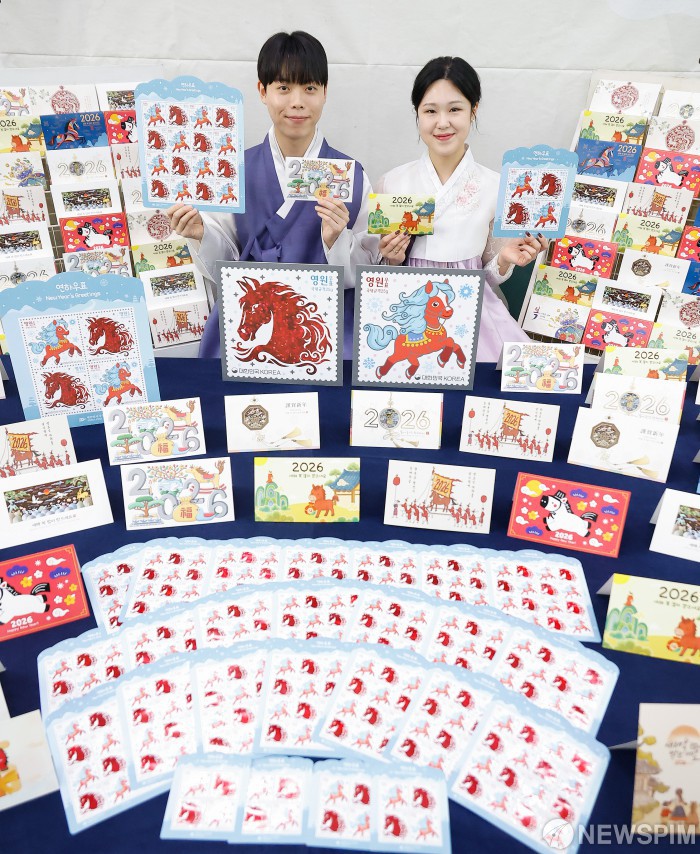 [서울=뉴스핌] 류기찬 기자 = 우정사업본부가 2026년 병오년(丙午年) ‘붉은 말의 해’를 맞아 27일 오전 서울 중구 서울중앙우체국 우표박물관에서 ‘2026 병오년(丙午年)’ 연하우표‧연하카드를 공개하고 있다. 2025.11.27 ryuchan0925@newspim.com